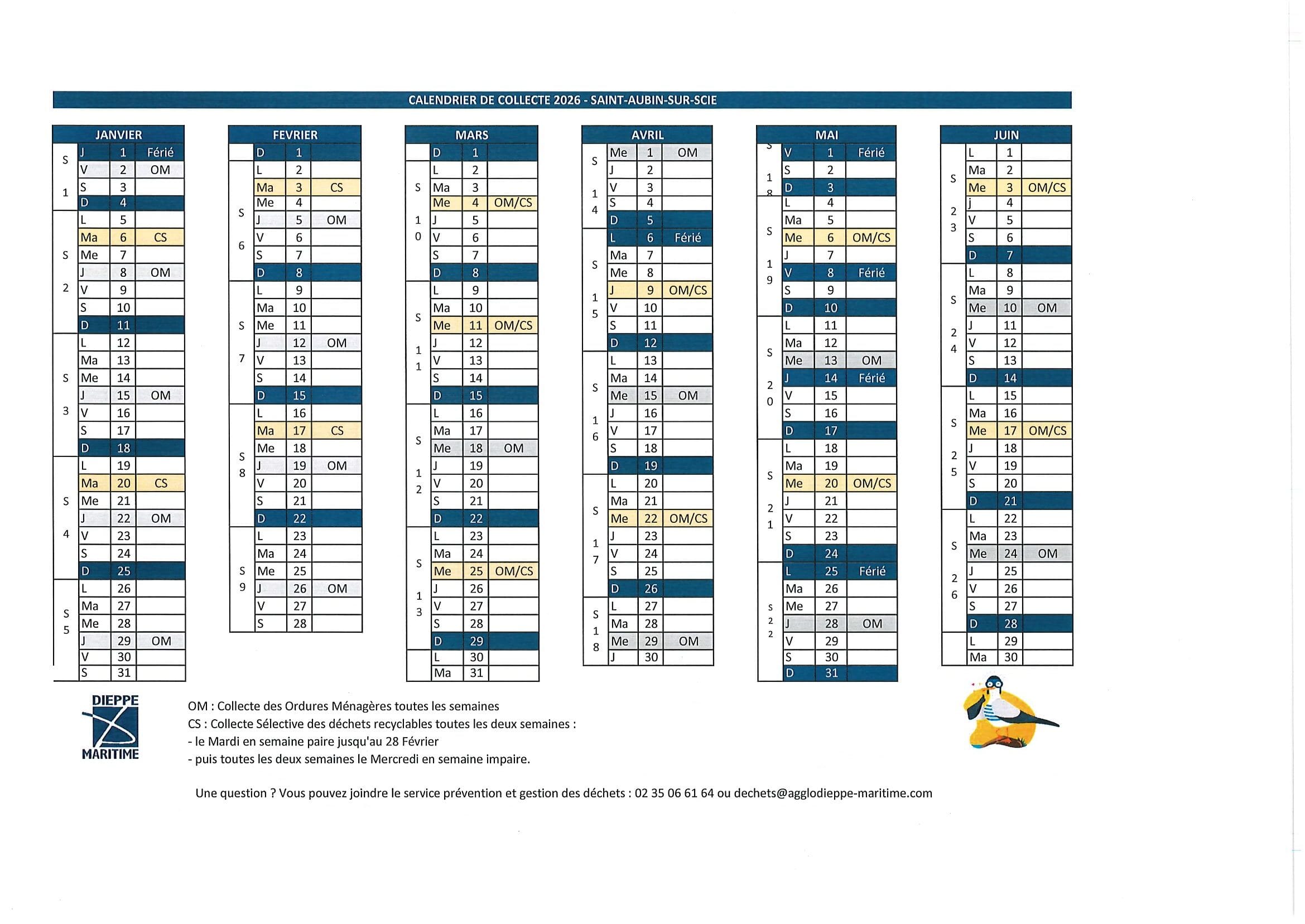 CALENDRIER DE COLLECTE DES DECHETS 2026