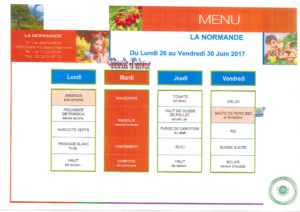 Menu du 26 au 30 juin